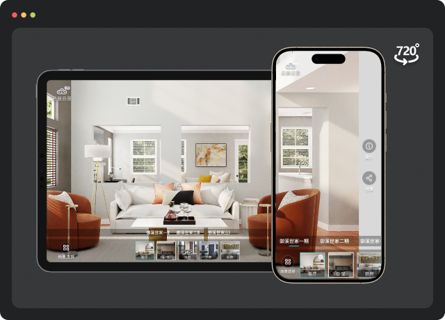 將全景素材上傳發(fā)布到云展網(wǎng),即可微信分發(fā)給你的客戶在線查看,720°全方位展示你的全景空間,為客戶帶來沉浸式的體驗