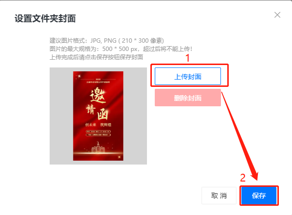 自定義封面:上傳圖片設(shè)置文件夾封面。
