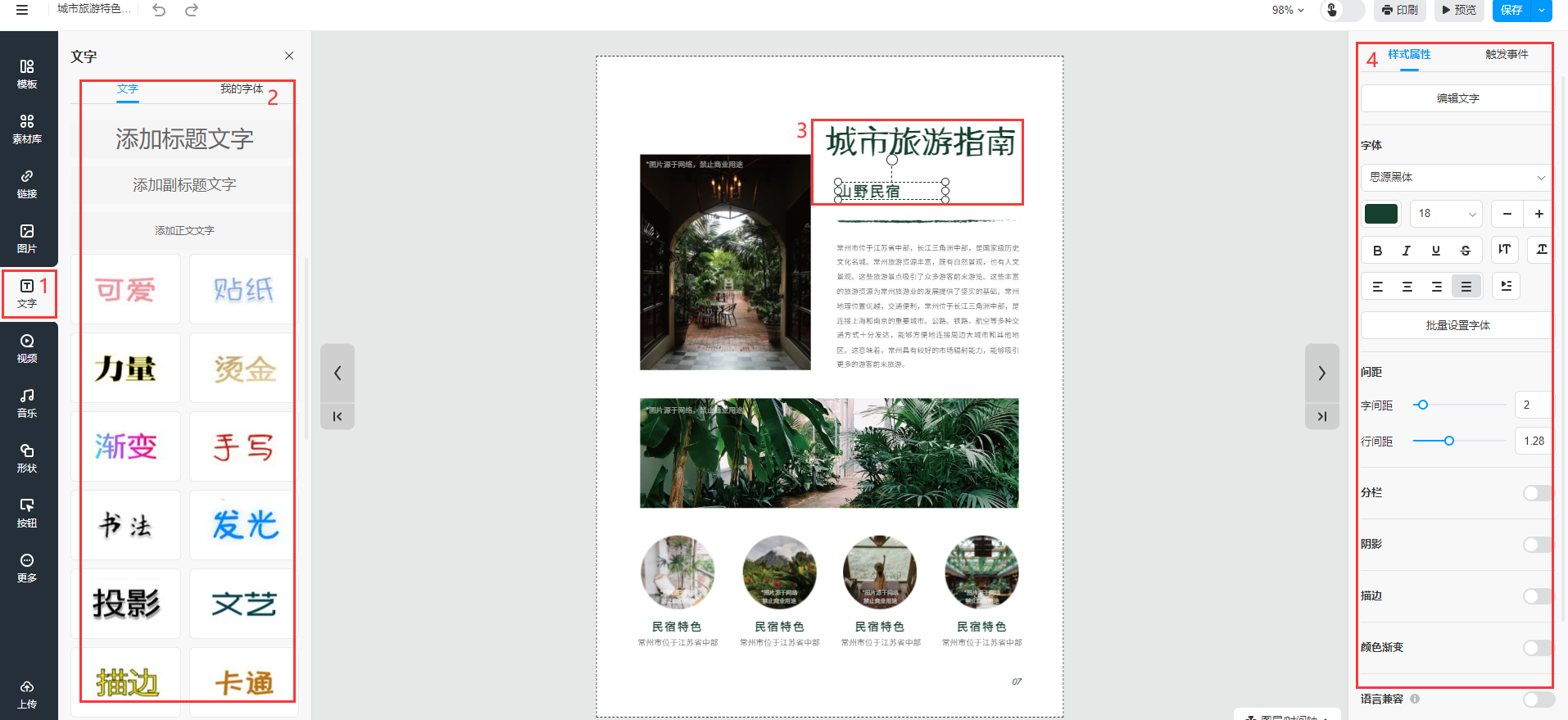添加文字功能可以在空白文檔中快速添加文本區(qū)域、標(biāo)題、副標(biāo)題及使用酷炫文體。也可以在生成電子書后,追加文字而不用重新上傳文檔。添加文字可以提供內(nèi)容解釋和詳細(xì)信息,引導(dǎo)讀者更深入理解。