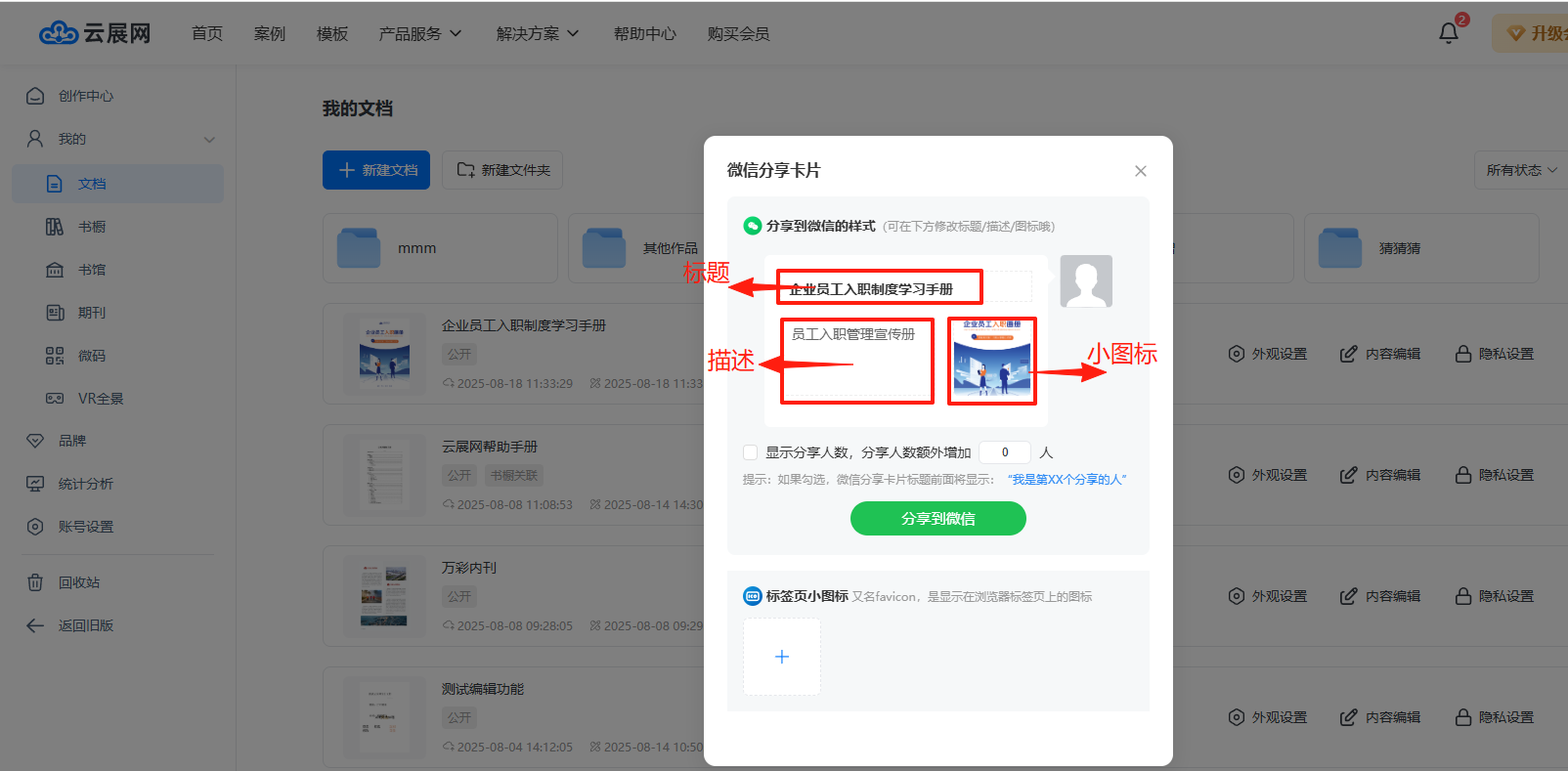 翻頁電子書制作 修改云展網(wǎng)雜志和書櫥在微信顯示的標題、小圖標和描述