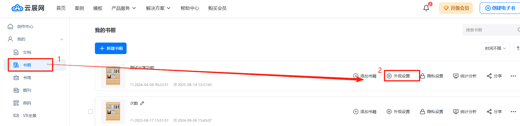在【書櫥】頁面 ,點擊【外觀設置】進入