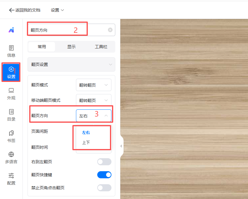 2、設(shè)置翻頁(yè)模式和翻頁(yè)方向